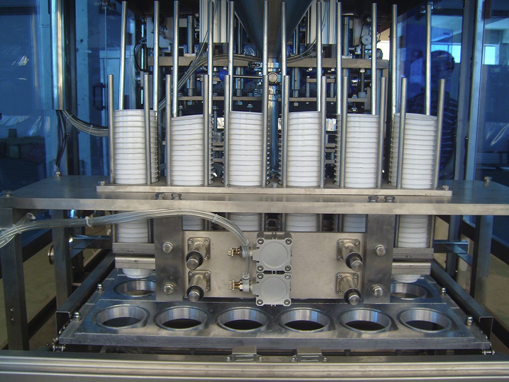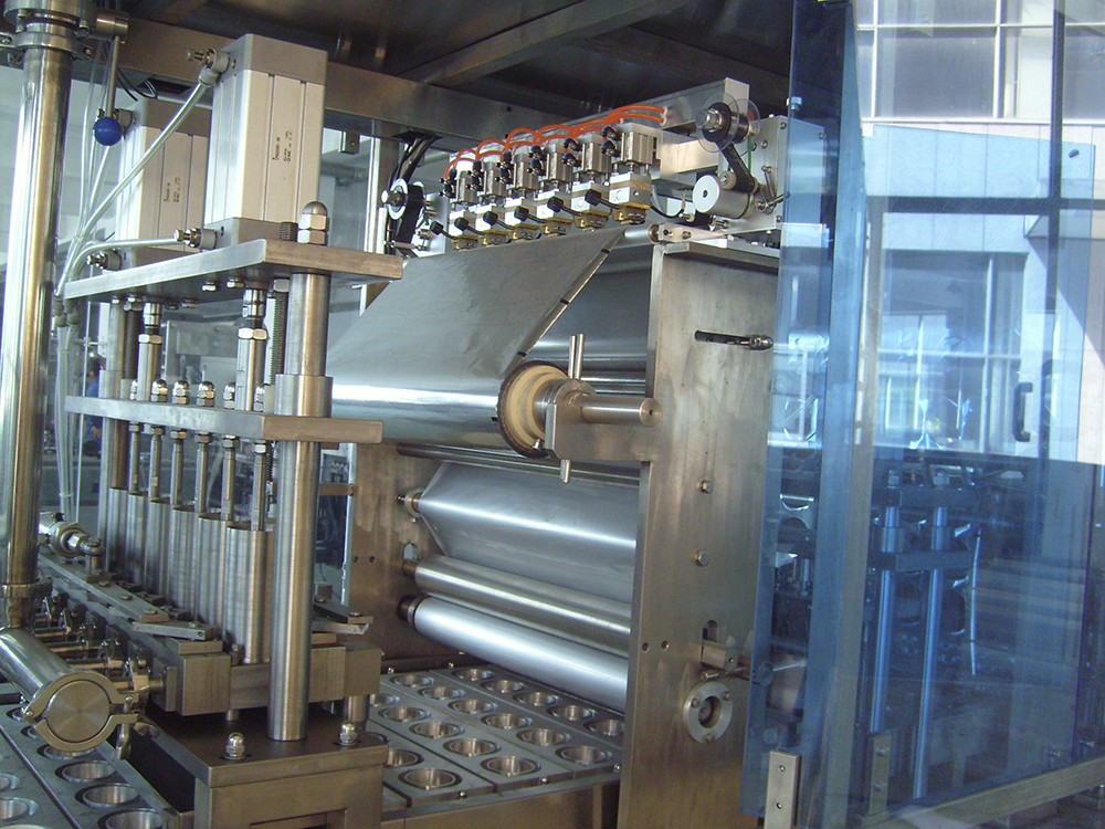 • SKB系列全自動灌裝封口機是適用于預制塑杯、紙杯或紙塑杯通用的直線步進式灌裝封口設備,該機型采用卷膜。該機可自動完成下杯、灌裝、切膜、對標、打碼、封口、出杯、輸送等動作。標準型機架的設備適用于50-300毫升/杯的灌裝容量,特別設計的物料灌裝系統(tǒng)和CIP清洗裝置適用于灌注生產過程中衛(wèi)生要求嚴格的產品。該機型可用于純牛奶、酸奶、乳飲料、豆?jié){、果汁、果凍、冰淇淋、調味品、日化等液體或半黏稠狀物料的灌裝,可定制含顆粒物料的灌裝系統(tǒng);除常溫灌裝外,也可定制適用于熱灌裝的系統(tǒng)。 可根據用戶需求,設計新機型。